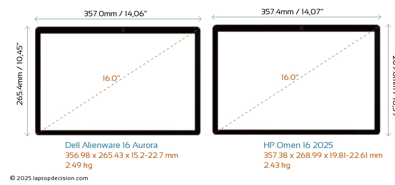ThunderboltNinguno de los dos Alienware 16 Aurora ni Omen 16 2025 tiene puerto Thunderbolt.