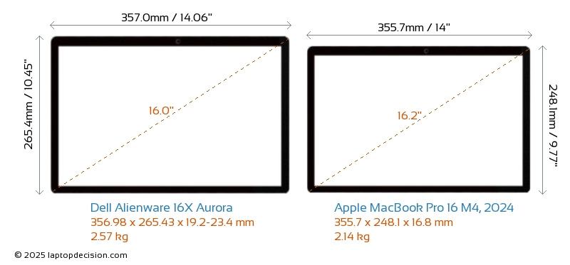 HDMIAmbos Alienware 16X Aurora y MacBook Pro 16 M4, 2024 cuentan con un puerto HDMI (1x HDMI 2.1) para conectar a monitores externos.
