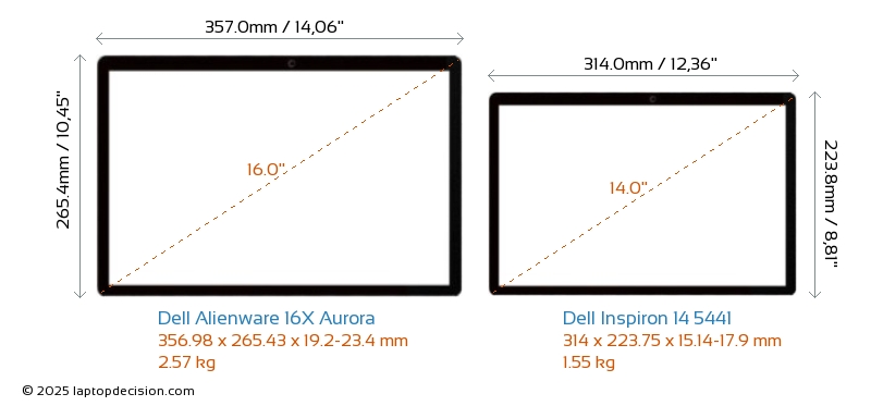 HDMI Alienware 16X Aurora cuenta con un puerto HDMI (1x HDMI 2.1) para conectar a monitores externos. Inspiron 14 5441 no tiene puerto HDMI.