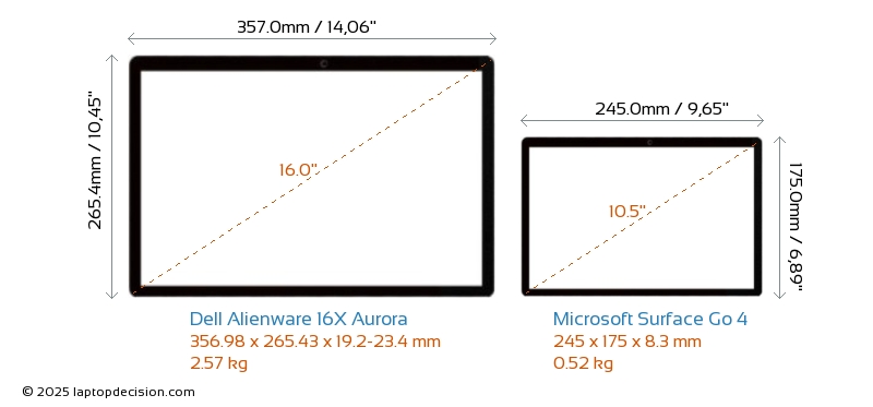 Thunderbolt Alienware 16X Aurora está equipado con un puerto Thunderbolt 4. Surface Go 4 no tiene puerto Thunderbolt.