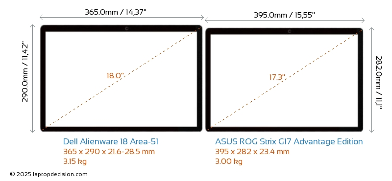 Thunderbolt Alienware 18 Area-51 está equipado con un puerto Thunderbolt 5. ROG Strix G17 Advantage Edition no tiene puerto Thunderbolt.