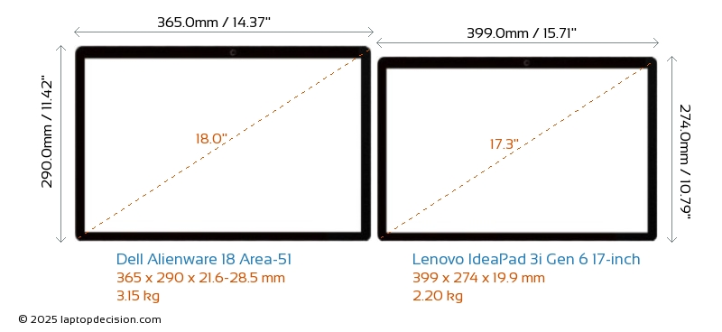 HDMIAmbos Alienware 18 Area-51 y IdeaPad 3i Gen 6 17-inch cuentan con un puerto HDMI. Alienware 18 Area-51 ofrece 1x HDMI 2.1, mientras que IdeaPad 3i Gen 6 17-inch ofrece 1x HDMI 1.4.