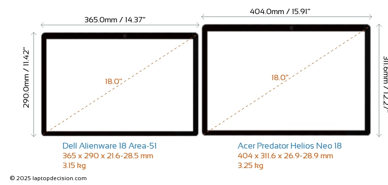 USBAmbos Alienware 18 Area-51 y Predator Helios Neo 18 cuentan con 3x USB 3.2 puertos USB-A.Ambos Alienware 18 Area-51 y Predator Helios Neo 18 tienen puertos USB Type-C. Alienware 18 Area-51 tiene 2x USB 4.0 puertos USB Type-C, mientras que Predator Helios Neo 18 tiene 2x USB 3.2 puertos USB Type-C.
