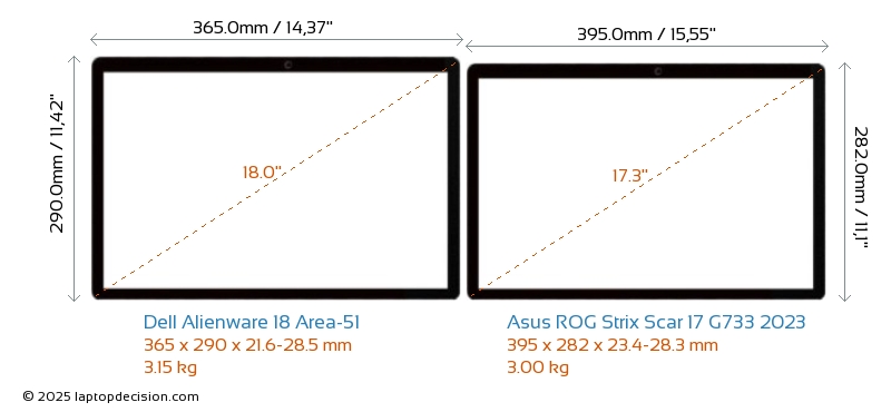 HDMIAmbos Alienware 18 Area-51 y ROG Strix Scar 17 G733 2023 cuentan con un puerto HDMI (1x HDMI 2.1) para conectar a monitores externos.
