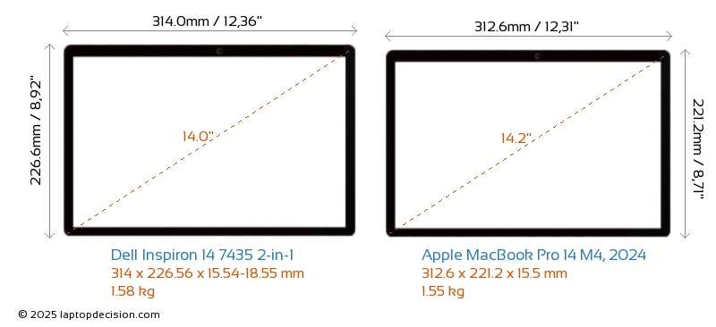 Thunderbolt MacBook Pro 14 M4, 2024 está equipado con un puerto Thunderbolt 4. Inspiron 14 7435 2-in-1 no tiene puerto Thunderbolt.