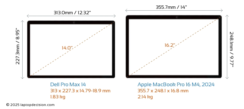 ThunderboltAmbos Pro Max 14 y MacBook Pro 16 M4, 2024 cuentan con puertos Thunderbolt. Pro Max 14 tiene Thunderbolt 4, mientras que MacBook Pro 16 M4, 2024 tiene Thunderbolt 5.