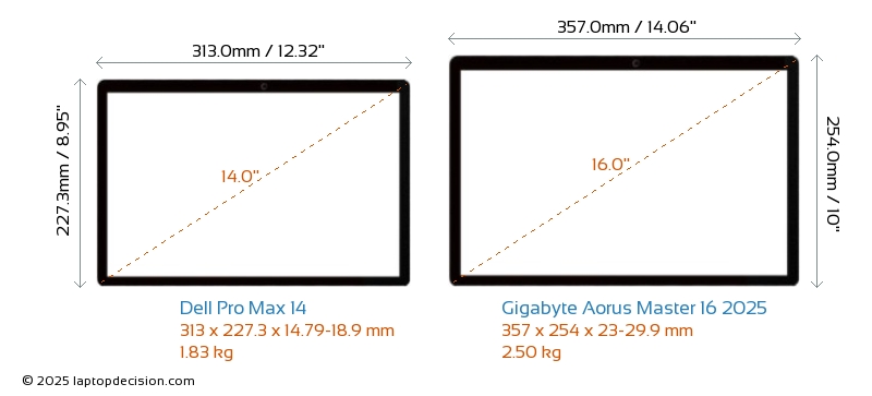 ThunderboltAmbos Pro Max 14 y Aorus Master 16 2025 cuentan con puertos Thunderbolt. Pro Max 14 tiene Thunderbolt 4, mientras que Aorus Master 16 2025 tiene Thunderbolt 5.