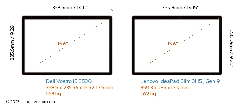 HDMIAmbos Vostro 15 3530 y IdeaPad Slim 3i 15 , Gen 9 cuentan con un puerto HDMI (1x HDMI 1.4) para conectar a monitores externos.