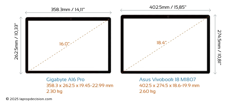ThunderboltNinguno de los dos A16 Pro ni Vivobook 18 M1807 tiene puerto Thunderbolt.