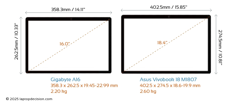 HDMIAmbos A16 y Vivobook 18 M1807 cuentan con un puerto HDMI (1x HDMI 2.1) para conectar a monitores externos.