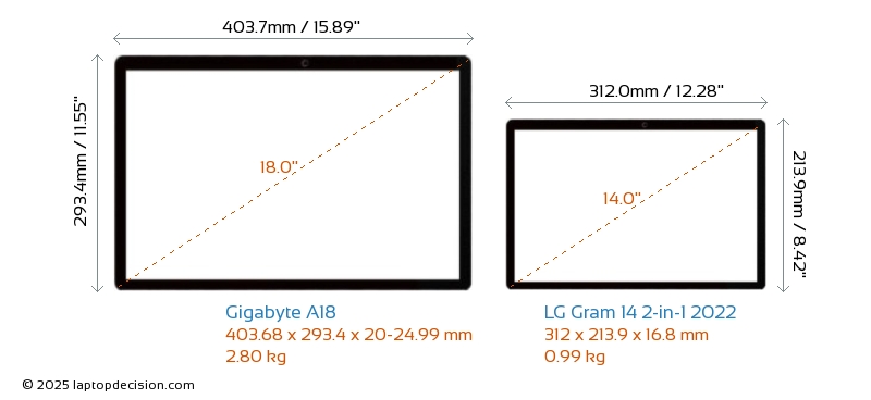 HDMIAmbos A18 y Gram 14 2-in-1 2022 cuentan con un puerto HDMI. A18 ofrece 1x HDMI 2.1, mientras que Gram 14 2-in-1 2022 ofrece 1x HDMI 2.0.