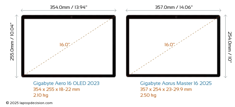 HDMIAmbos Aero 16 OLED 2023 y Aorus Master 16 2025 cuentan con un puerto HDMI (1x HDMI 2.1) para conectar a monitores externos.
