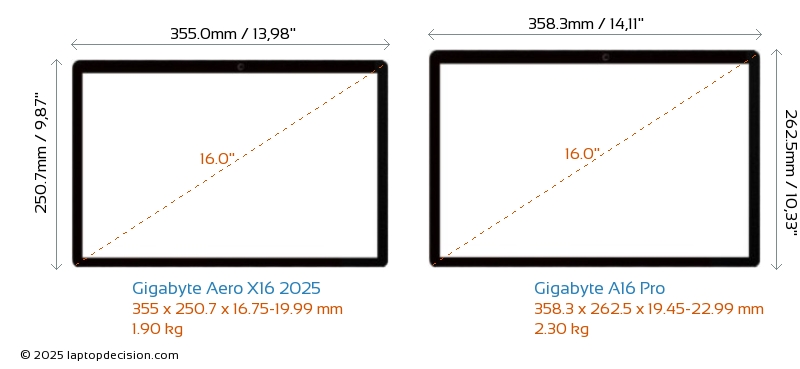 ThunderboltNinguno de los dos Aero X16 2025 ni A16 Pro tiene puerto Thunderbolt.