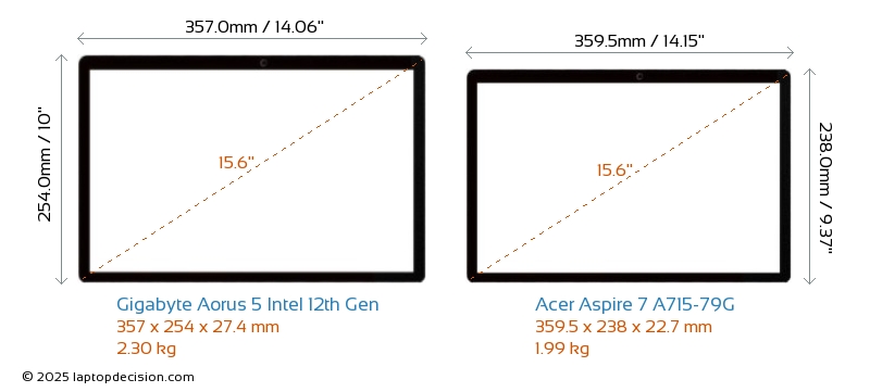 Thunderbolt Aorus 5 Intel 12th Gen está equipado con un puerto Thunderbolt 4. Aspire 7 A715-79G no tiene puerto Thunderbolt.