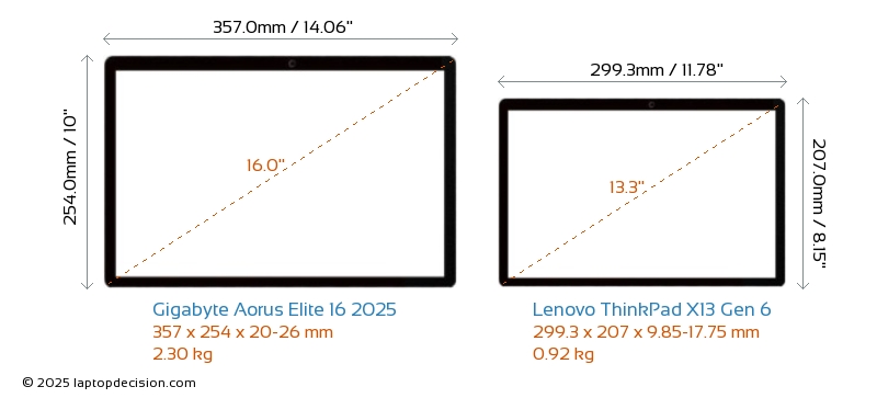 HDMIAmbos Aorus Elite 16 2025 y ThinkPad X13 Gen 6 cuentan con un puerto HDMI (1x HDMI 2.1) para conectar a monitores externos.