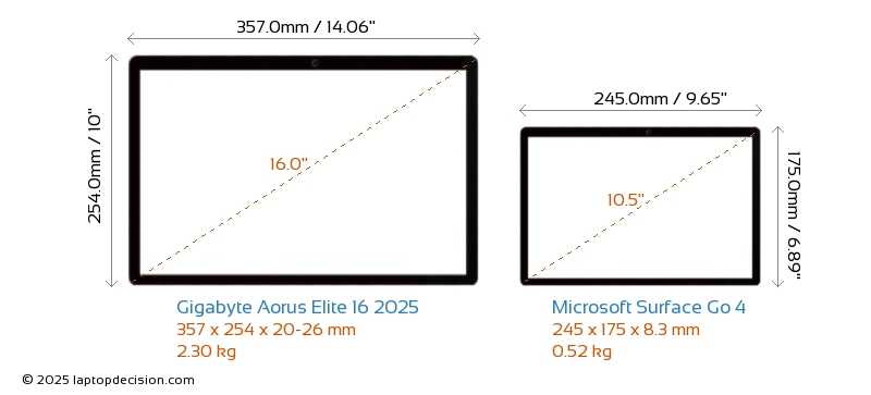 Thunderbolt Aorus Elite 16 2025 está equipado con un puerto Thunderbolt 5. Surface Go 4 no tiene puerto Thunderbolt.