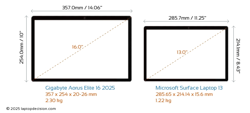 Conector de AudioAmbos Aorus Elite 16 2025 y Surface Laptop 13 están equipados con un conector de audio de 3.5 mm, proporcionando una conexión sin interrupciones a auriculares y altavoces.