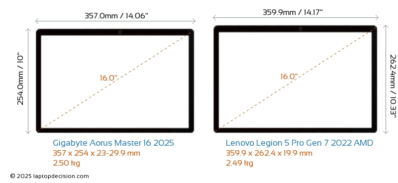 Thunderbolt Aorus Master 16 2025 está equipado con un puerto Thunderbolt 5. Legion 5 Pro Gen 7 2022 AMD no tiene puerto Thunderbolt.