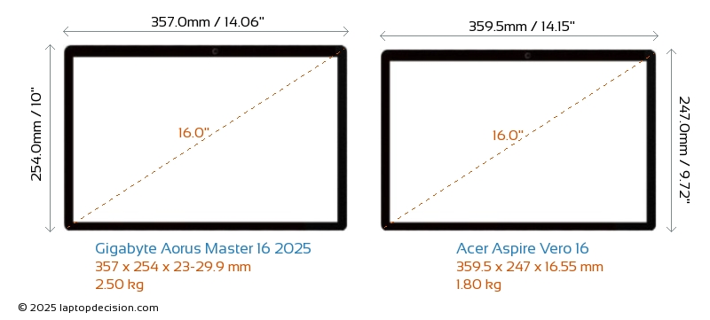 USBAmbos Aorus Master 16 2025 y Aspire Vero 16 cuentan con 2x USB 3.2 puertos USB-A.Ambos Aorus Master 16 2025 y Aspire Vero 16 cuentan con 2x USB 4.0 puertos USB Type-C.
