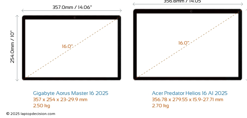 HDMIAmbos Aorus Master 16 2025 y Predator Helios 16 AI 2025 cuentan con un puerto HDMI (1x HDMI 2.1) para conectar a monitores externos.