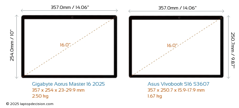 HDMIAmbos Aorus Master 16 2025 y Vivobook S16 S3607 cuentan con un puerto HDMI (1x HDMI 2.1) para conectar a monitores externos.