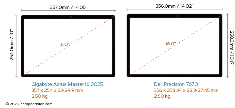 USBAmbos Aorus Master 16 2025 y Precision 7670 cuentan con 2x USB 3.2 puertos USB-A.Ambos Aorus Master 16 2025 y Precision 7670 tienen puertos USB Type-C. Aorus Master 16 2025 tiene 2x USB 4.0 puertos USB Type-C, mientras que Precision 7670 tiene 3x USB 3.2 puertos USB Type-C.
