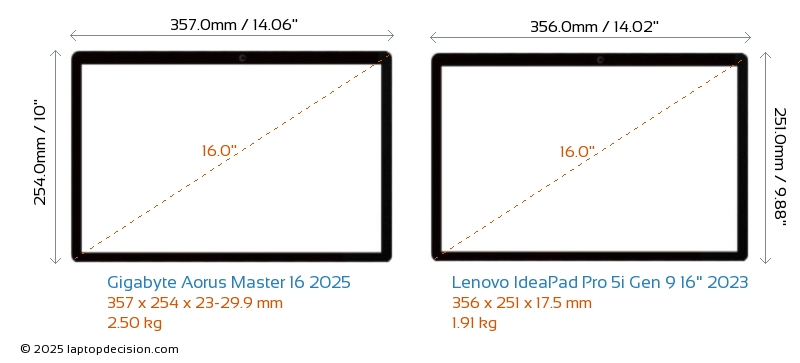 Wifi Aorus Master 16 2025 cuenta con un estándar de Wi-Fi más avanzado v7, proporcionando conexiones inalámbricas más rápidas y fiables en comparación con IdeaPad Pro 5i Gen 9 16" 2023 (v6E).
