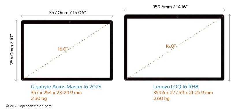 HDMIAmbos Aorus Master 16 2025 y LOQ 16IRH8 cuentan con un puerto HDMI (1x HDMI 2.1) para conectar a monitores externos.