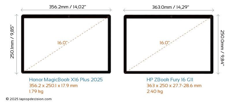 USBAmbos MagicBook X16 Plus 2025 y ZBook Fury 16 G11 cuentan con 2x USB 3.2 puertos USB-A.Ambos MagicBook X16 Plus 2025 y ZBook Fury 16 G11 cuentan con 2x USB 4.0 puertos USB Type-C.