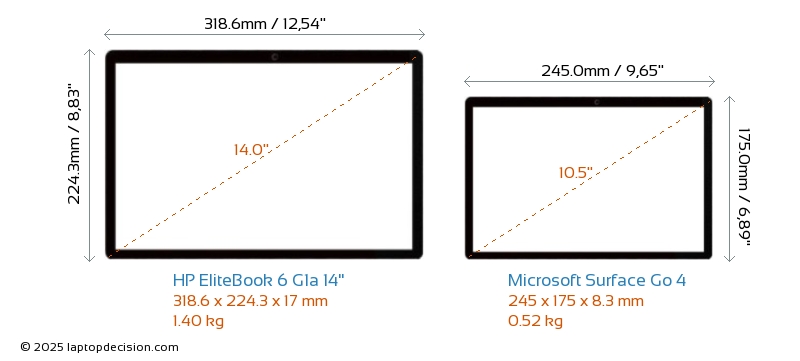 HDMI EliteBook 6 G1a 14" cuenta con un puerto HDMI (1x HDMI 2.1) para conectar a monitores externos. Surface Go 4 no tiene puerto HDMI.