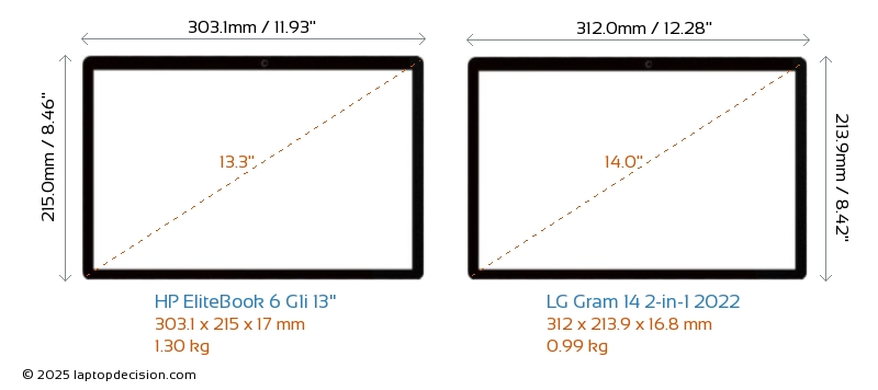 USBAmbos EliteBook 6 G1i 13" y Gram 14 2-in-1 2022 cuentan con 2x USB 3.2 puertos USB-A.Ambos EliteBook 6 G1i 13" y Gram 14 2-in-1 2022 cuentan con 2x USB 4.0 puertos USB Type-C.