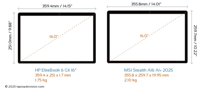 HDMIAmbos EliteBook 6 G1i 16" y Stealth A16 AI+ 2025 cuentan con un puerto HDMI (1x HDMI 2.1) para conectar a monitores externos.