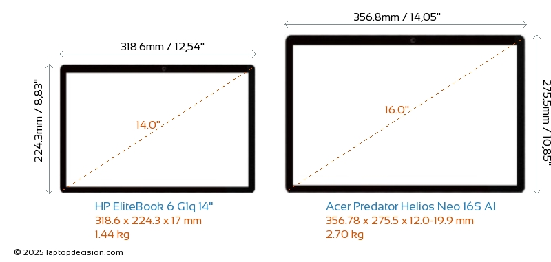 HDMIAmbos EliteBook 6 G1q 14" y Predator Helios Neo 16S AI cuentan con un puerto HDMI (1x HDMI 2.1) para conectar a monitores externos.