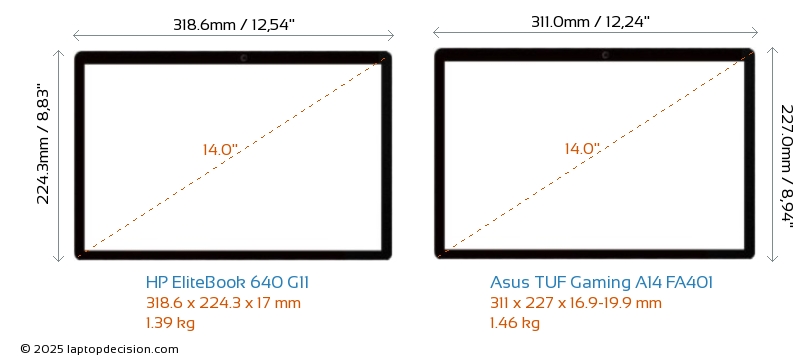 HDMIAmbos EliteBook 640 G11 y TUF Gaming A14 FA401 cuentan con un puerto HDMI (1x HDMI 2.1) para conectar a monitores externos.