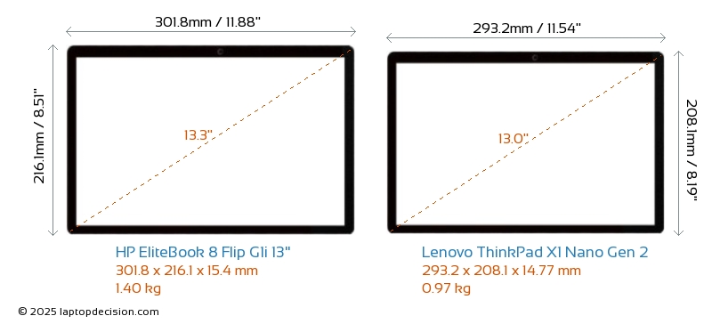 HDMI EliteBook 8 Flip G1i 13" cuenta con un puerto HDMI (1x HDMI 2.1) para conectar a monitores externos. ThinkPad X1 Nano Gen 2 no tiene puerto HDMI.