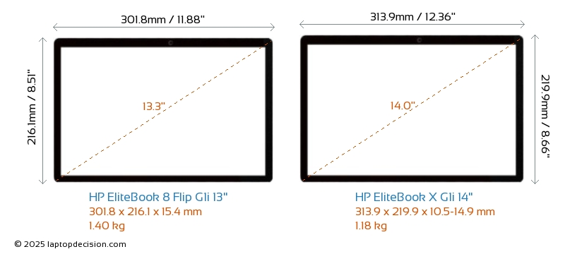 USBAmbos EliteBook 8 Flip G1i 13" y EliteBook X G1i 14" cuentan con 1x USB 3.2 puertos USB-A.Ambos EliteBook 8 Flip G1i 13" y EliteBook X G1i 14" cuentan con 3x USB 4.0 puertos USB Type-C.