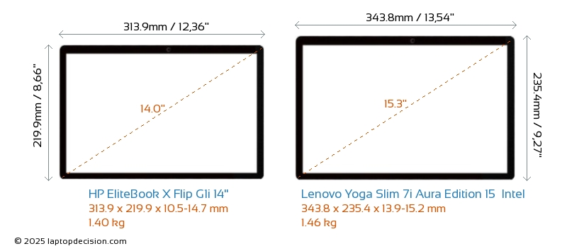 USBAmbos EliteBook X Flip G1i 14" y Yoga Slim 7i Aura Edition 15 Intel cuentan con 1x USB 3.2 puertos USB-A.Ambos EliteBook X Flip G1i 14" y Yoga Slim 7i Aura Edition 15 Intel tienen puertos USB Type-C. EliteBook X Flip G1i 14" tiene 3x USB 4.0 puertos USB Type-C, mientras que Yoga Slim 7i Aura Edition 15 Intel tiene 2x USB 4.0 puertos USB Type-C.