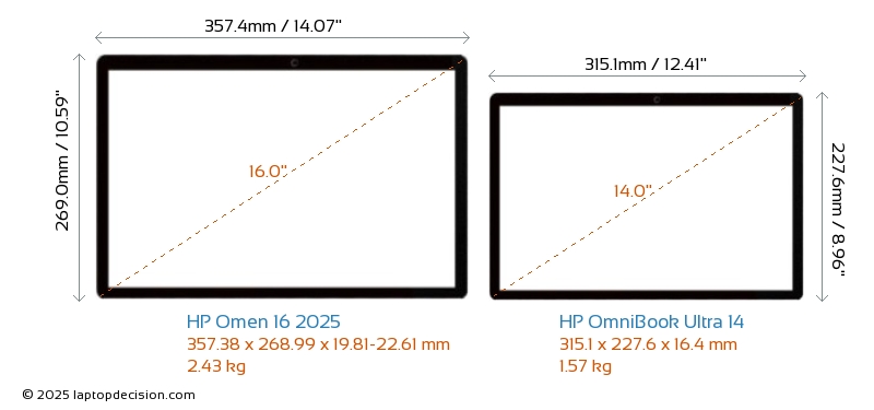 HDMI Omen 16 2025 cuenta con un puerto HDMI (1x HDMI 2.1) para conectar a monitores externos. OmniBook Ultra 14 no tiene puerto HDMI.