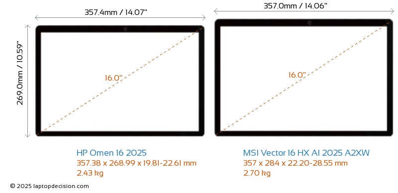 Thunderbolt Vector 16 HX AI 2025 A2XW está equipado con un puerto Thunderbolt 5. Omen 16 2025 no tiene puerto Thunderbolt.