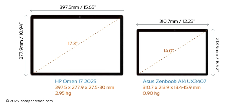 HDMIAmbos Omen 17 2025 y Zenbook A14 UX3407 cuentan con un puerto HDMI (1x HDMI 2.1) para conectar a monitores externos.