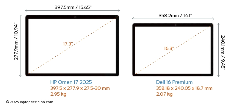 HDMI Omen 17 2025 cuenta con un puerto HDMI (1x HDMI 2.1) para conectar a monitores externos. 16 Premium no tiene puerto HDMI.