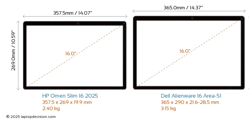 HDMIAmbos Omen Slim 16 2025 y Alienware 16 Area-51 cuentan con un puerto HDMI (1x HDMI 2.1) para conectar a monitores externos.