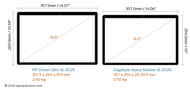 HDMIAmbos Omen Slim 16 2025 y Aorus Master 16 2025 cuentan con un puerto HDMI (1x HDMI 2.1) para conectar a monitores externos.