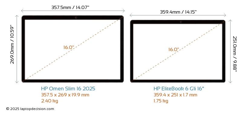 Thunderbolt EliteBook 6 G1i 16" está equipado con un puerto Thunderbolt 4. Omen Slim 16 2025 no tiene puerto Thunderbolt.