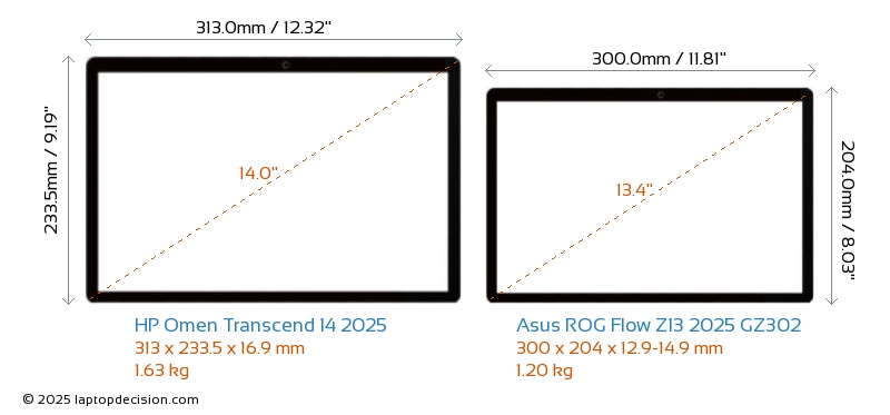 HDMIAmbos Omen Transcend 14 2025 y ROG Flow Z13 2025 GZ302 cuentan con un puerto HDMI (1x HDMI 2.1) para conectar a monitores externos.