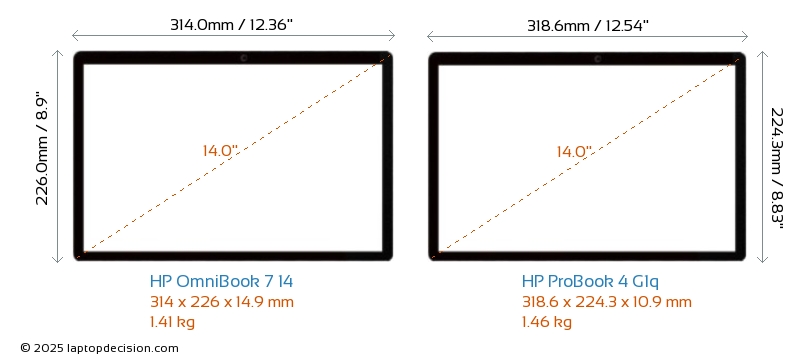 USBAmbos OmniBook 7 14 y ProBook 4 G1q cuentan con 2x USB 3.2 puertos USB-A.Ambos OmniBook 7 14 y ProBook 4 G1q tienen puertos USB Type-C. OmniBook 7 14 tiene 2x USB 4.0 puertos USB Type-C, mientras que ProBook 4 G1q tiene 2x USB 3.2 puertos USB Type-C.