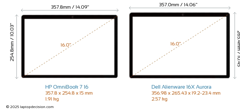 HDMIAmbos OmniBook 7 16 y Alienware 16X Aurora cuentan con un puerto HDMI (1x HDMI 2.1) para conectar a monitores externos.