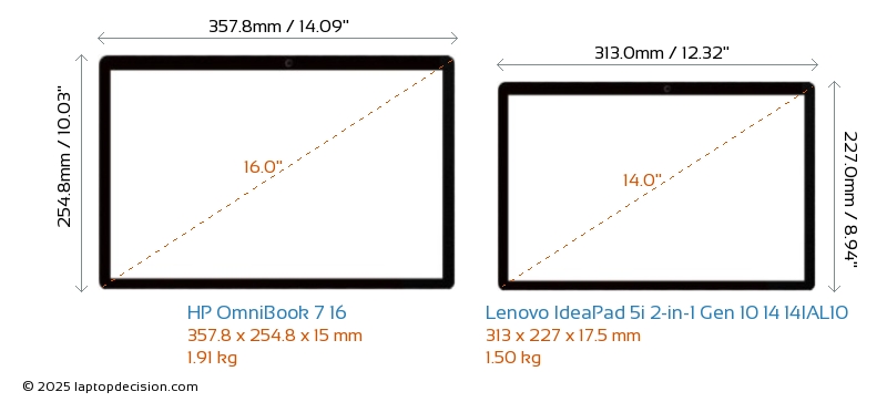 USBAmbos OmniBook 7 16 y IdeaPad 5i 2-in-1 Gen 10 14 14IAL10 cuentan con 2x USB 3.2 puertos USB-A.Ambos OmniBook 7 16 y IdeaPad 5i 2-in-1 Gen 10 14 14IAL10 cuentan con 2x USB 4.0 puertos USB Type-C.