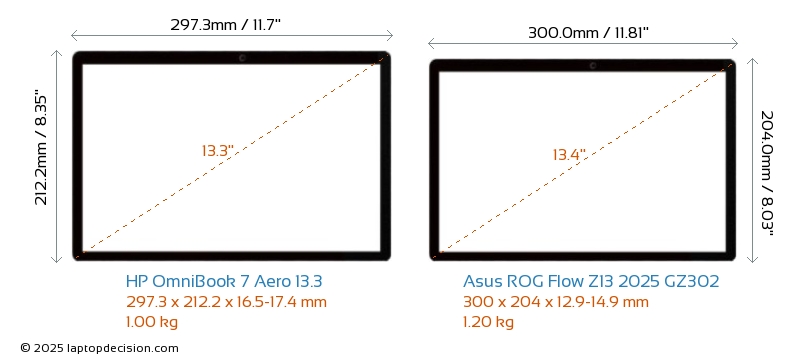 ThunderboltNinguno de los dos OmniBook 7 Aero 13.3 ni ROG Flow Z13 2025 GZ302 tiene puerto Thunderbolt.