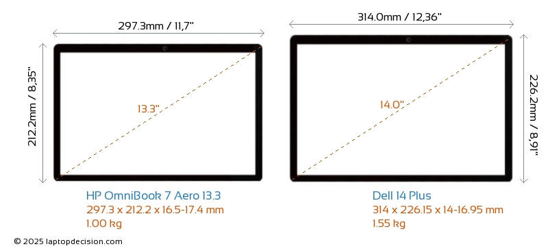 Thunderbolt 14 Plus está equipado con un puerto Thunderbolt 4. OmniBook 7 Aero 13.3 no tiene puerto Thunderbolt.